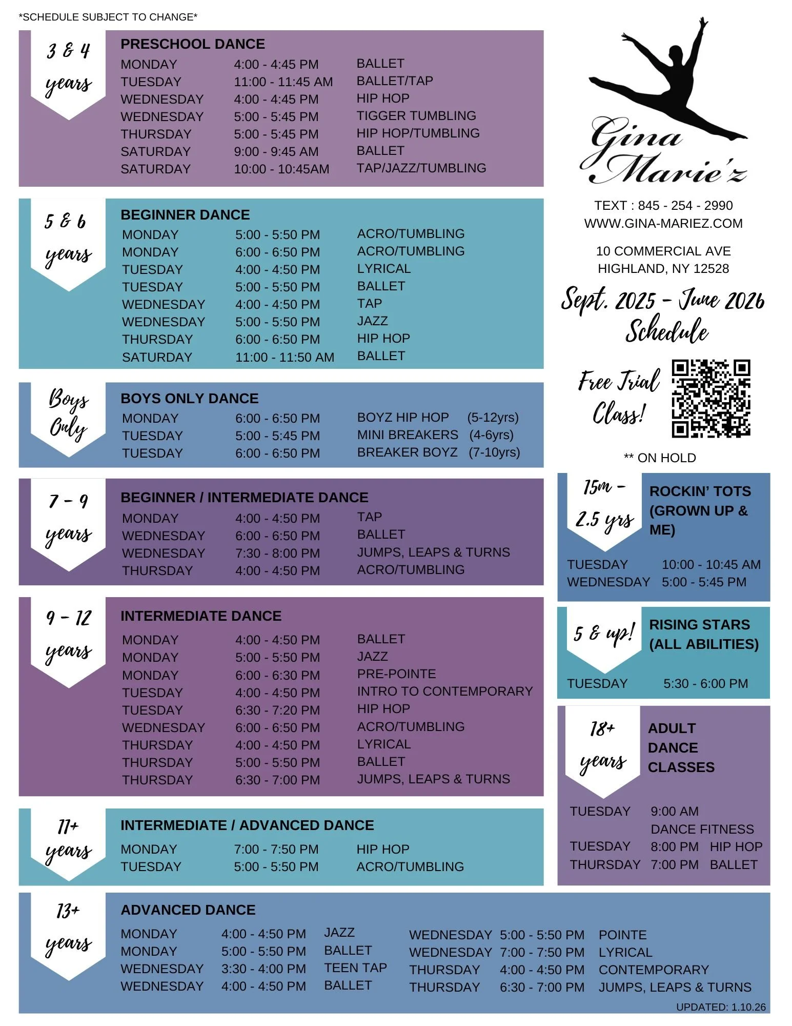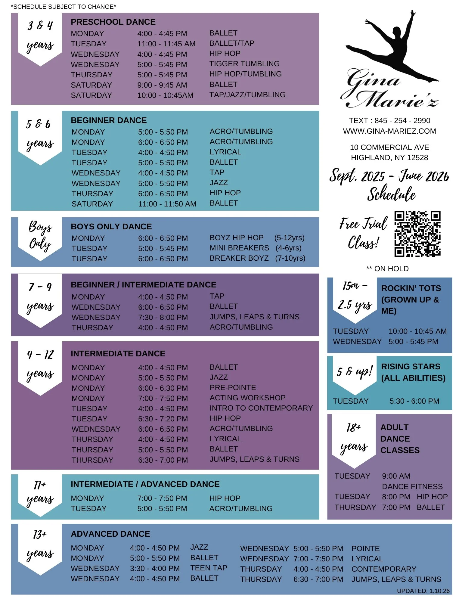 A Variety of Dance & Acro-Tumbling Classes for All Ages!